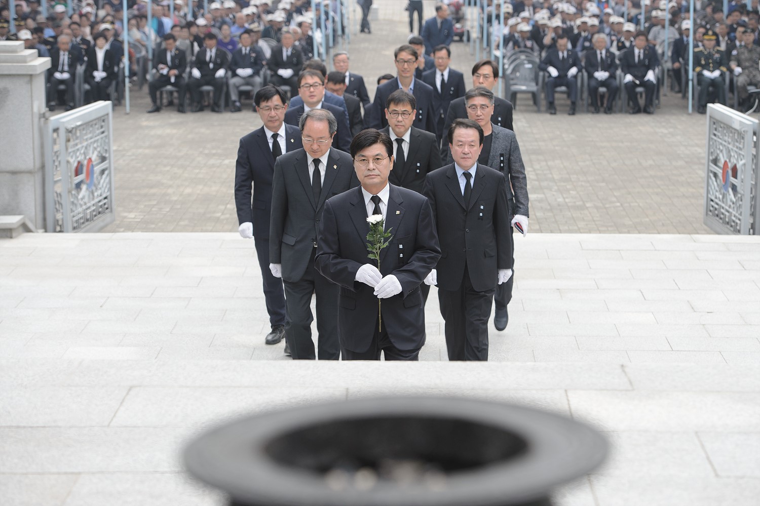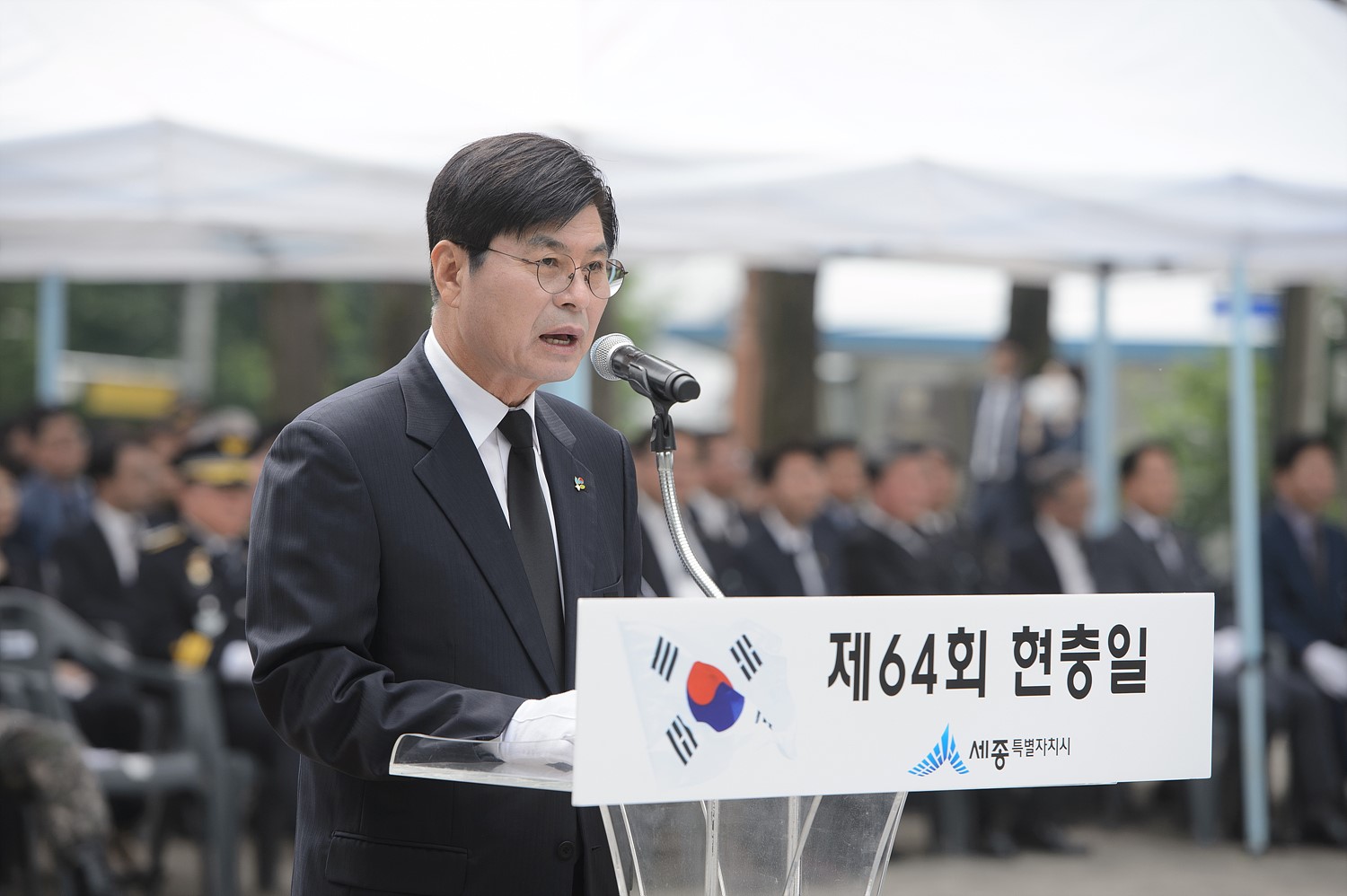 이날 추념식은 이춘희 시장, 김중로 국회의원, 서금택 세종시의회 의장, 김정환 세종경찰서장과 상이군경회·전몰군경유족회 세종지회 등 8개 보훈단체장 및 보훈가족 등 1,000여 명이 참가한 가운데 엄수됐다.