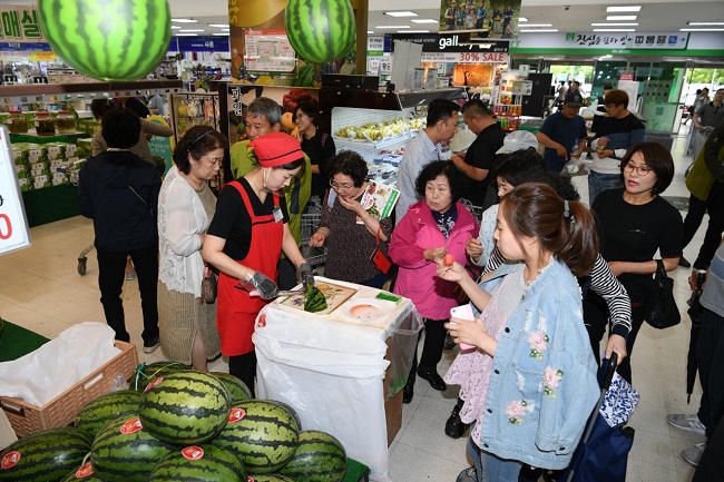 이번 행사는 군과 농협예산군연합사업단, 신양농협이 ‘예산수박’의 맛과 우수성을 홍보하고 수박 재배농가의 판로 확대를 위해 마련됐다.