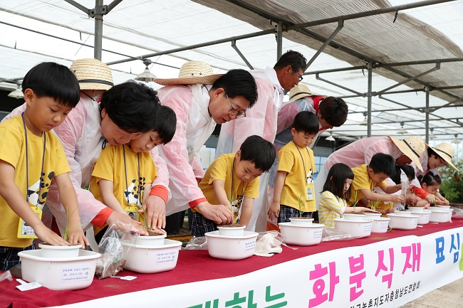 또 충남의 대표 품종인 삼광벼를 논에 직접 심는 전통 손모내기 체험, 도청 어린이집 원아 20여 명과 함께 한 화분 모심기 체험 등도 진행했다.