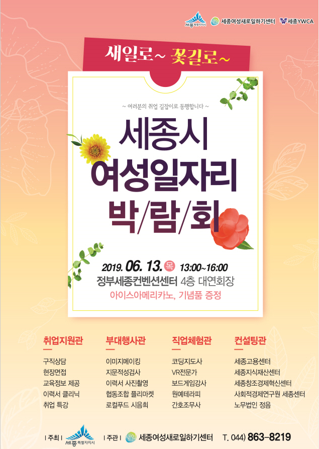 이번 세종시 여성 일자리 박람회는 시민 누구나 무료로 참여할 수 있으며, 보다 자세한 사항은 세종여성새로일하기센터(취업지원팀 ☎ 044-863-8219)에 문의하면 된다.