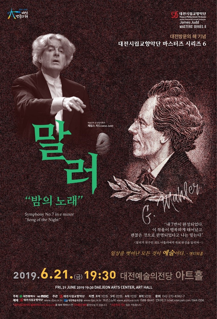 대전시립교향악단은 대전방문의 해 기념 마스터즈시리즈6 ‘말러-밤의 노래’를 오는 21일 오후 7시 30분 대전예술의전당 아트홀 무대에 올린다.