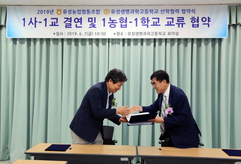 유성생명과학고등학교(교장 양영석)는 지난 7일 유성농협(조합장 류광석)과 지역의 우수 농업인재 양성을 위해 상호 교류․협력에 관한 협약을 체결하고, 농업인재 양성교육과 지역 농업의 발전에 긴밀히 협력하기로 밝혔다.