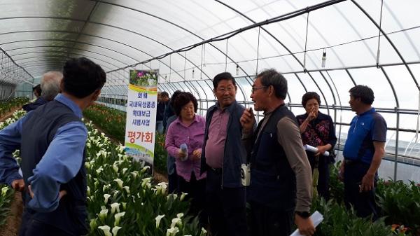 【세종TV-김광무 기자】금산군(군수 문정우)은 지난7일 화훼농가 20여명이 참석한 가운데 칼라와 프리지아의 국내육성품종 확대보급 시범사업에 대한 평가회를 고승환 농가(금산읍 계진리) 현장에서 실시했다.