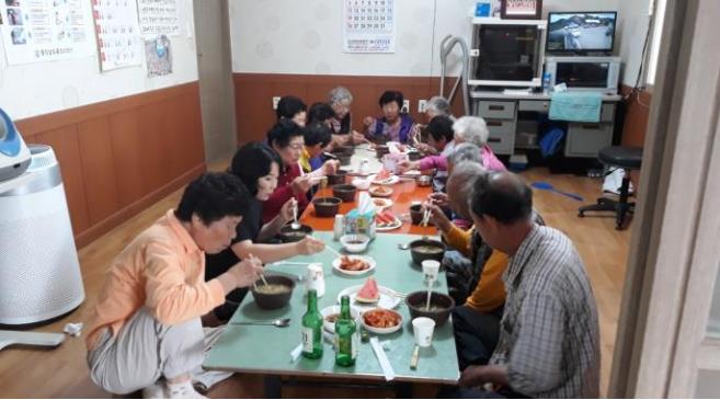 마을 주민은 “손 하나가 아쉬워 자칫 식사 준비를 소홀히 하기 십상이지만 이렇게 모여 식사하니 즐겁고 농업기 피로가 싹 가시는 느낌이라고” 말했다.
