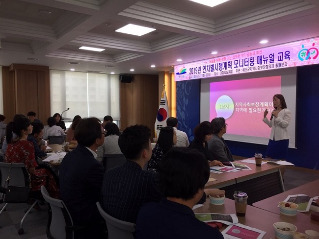 예산군지역사회보장협의체(민간위원장 배규희)는 11일 예산군청 대회의실에서 예산군 복지모니터링단, 군 협의체 실무분과위원, 사회보장 관련 사업담당자 등 100여명이 참석한 가운데 ‘2019 연차별시행계획 모니터링 매뉴얼 교육’을 진행했다.
