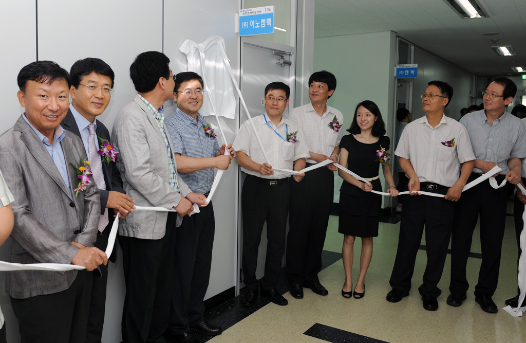 충남대 산학협력단은 2일 오전 11시, 대전시 유성구 용산동에 위치한 충남대 창업보육센터 106호에서 충남대, 미래창조과학부, 한국연구재단 및 관련 업체 관계자들이 참석한 가운데 ㈜시온텍, ㈜코아텍과 공동으로 현금 및 현물을 공동 투자해 설립한 산학연공동연구법인인 ㈜이노켐텍(대표 강경석)의 개소식과 현판식을 가졌다.