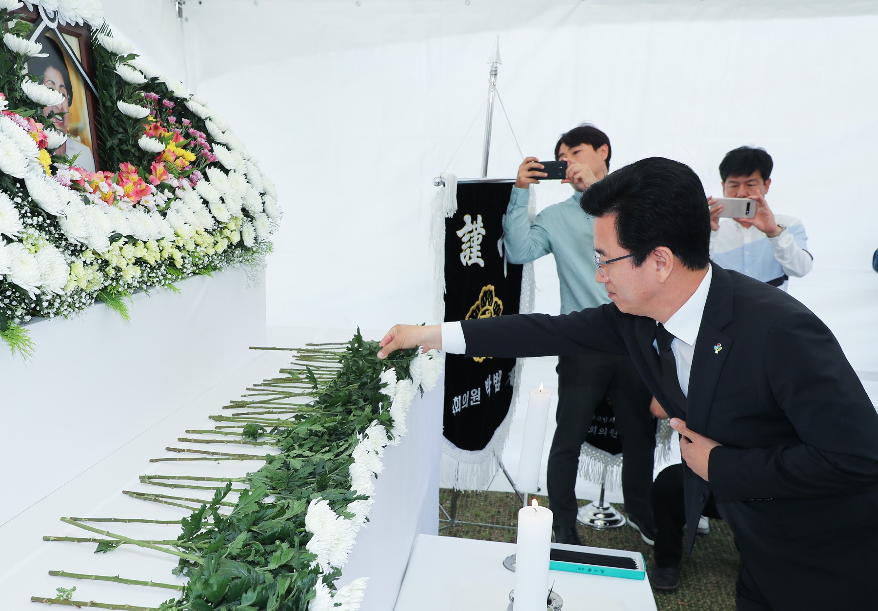 허태정 대전시장은 12일 오전 시 간부공무원들과 대전시청 북문 앞에 마련된 고(故) 이희호 여사 시민분향소를 찾아 조문하고, 민주주의와 여성 인권에 헌신한 고인의 명복을 빌었다.