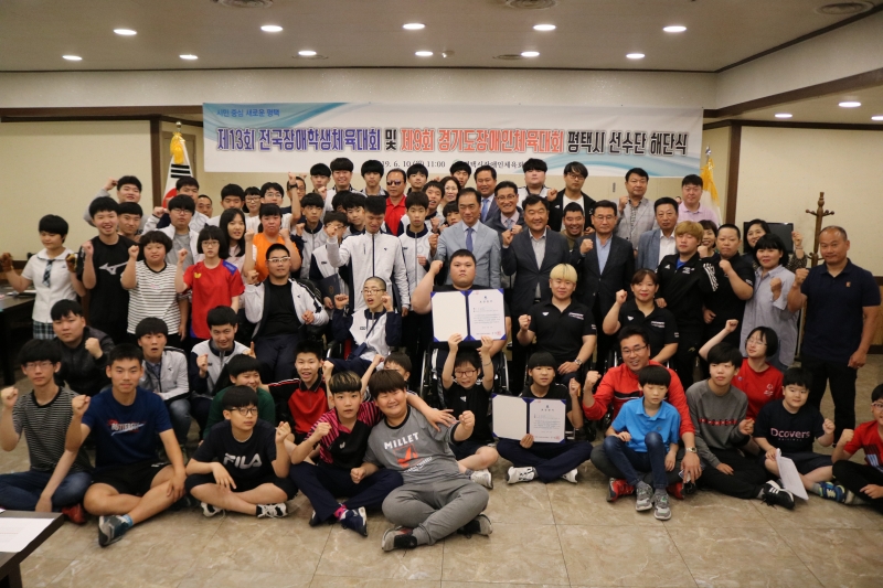 평택시장애인체육회(회장 정장선)는 지난 10일 제13회 전국장애학생체육대회 및 제9회 경기도장애인체육대회 해단식을 출전선수 및 가맹단체 임원 등(임원 및 보호자 30여명, 선수 130여명)이 참석한 가운데 진행했다.