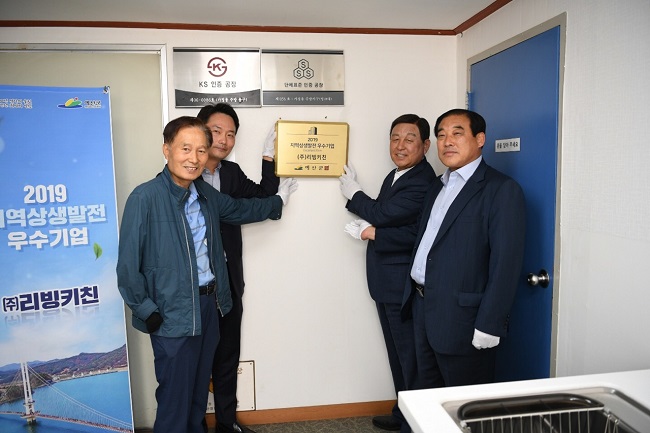 황선봉 군수는 지난 12일 2019년 지역상생발전 우수기업에 선정된 ㈜유티아이, ㈜한동, ㈜리빙키친 등 3개 기업을 방문, 인증 현판식을 가졌다.