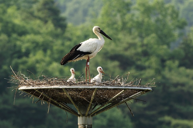 천연기념물 황새 복원의 중심지인 충남 예산군에서 2015년 첫 자연방사 이후 4년만에 방사 3세대 아기 황새가 탄생하는 결실을 맺었다.