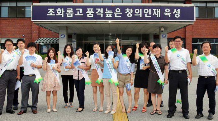 세종특별자치시교육청(교육감 신정균)은 7일 오전 본청 현관에서 직원들을 대상으로 안전․예방 캠페인을 통해 재난 안전의식 고취와 청사에 대한 합동 안전점검을 실시하여 재난발생에 대비했다