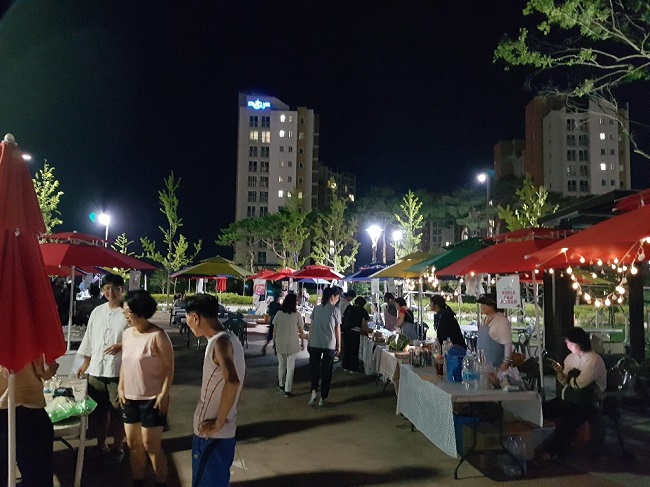 이 행사는 <홍성큐팜> 이라는 이름으로 20명의 농부들이 직접 가꾼 농산물과 가공품의 홍보와 판매, 소비자와의 소통을 목적으로 열리는 파머스마켓으로 소비자들은 저녁 산책도 즐기며 직접 농부들을 만날 수 있다.