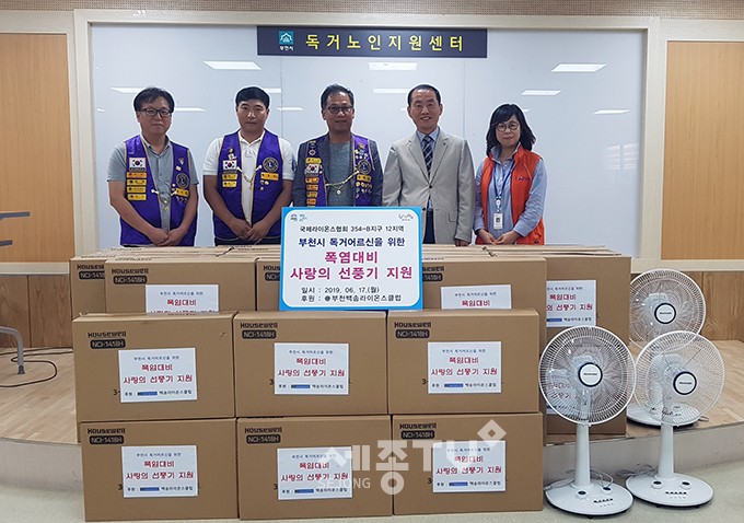 부천시 독거노인지원센터에서는 지난 6월 17일 부천 백송라이온스 클럽(지대장 안병선)의 후원으로 선풍기가 없는 독거어르신 42명에게 선풍기를 전달했다.