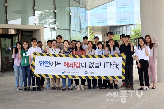 이날 행복청 직원들과 정책기자단이 모여 시민들에게 국민적 관심을 환기시키며, 안전분야의 부패를 방지하고 안전관리 최우선 문화를 정착시키기 위해 ‘안전24시 행복24시, 행복도시 세종!’ 안전한 도시 만들기를 알렸다.