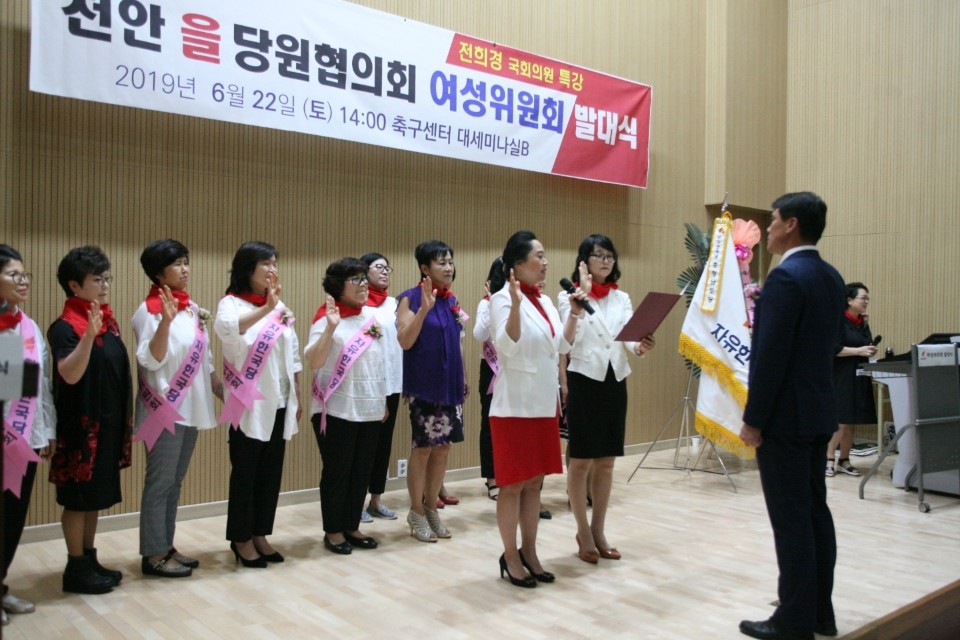 자유한국당 천안시(을) 당원협의회(이하 당협, 위원장 신진영)는 “지역 내 여성들의 활발한 정치 참여와 여성의 권익 신장을 위해 여성위원회를 조직, 발대식을 22일 14시에 천안시 성정동 축구센터에서 개최했다”고 밝혔다.