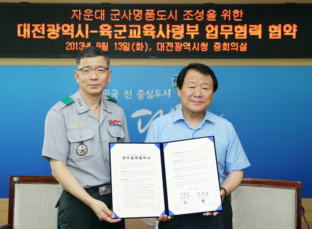 대전시는 13일 육군교육사령부(사령관 류제승)와 ‘자운대 군사명품도시’조성을 위한 업무협력 협약을 체결했다.
