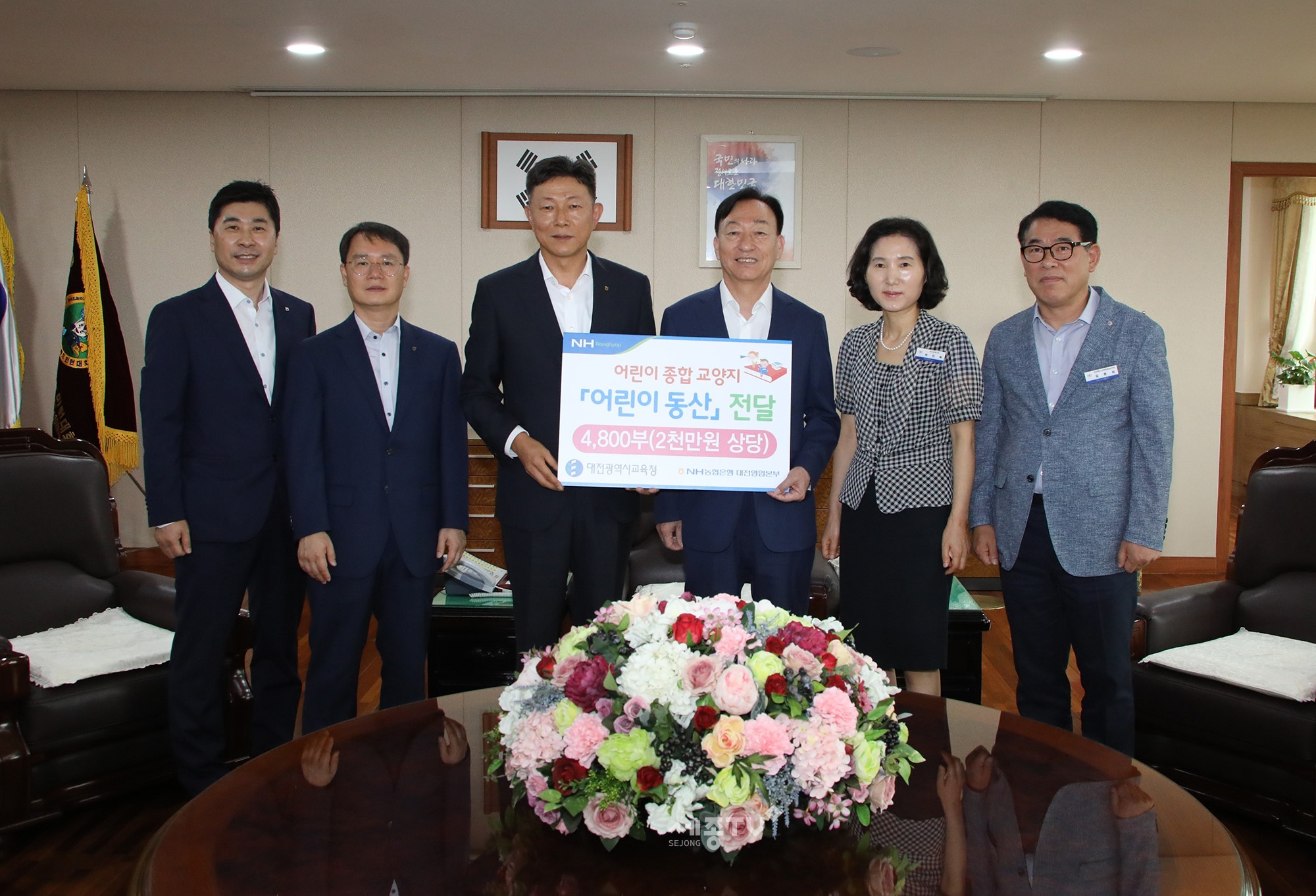 대전광역시교육청(교육감 설동호)은 6월 27일(목) 10:00 시교육청 접견실에서 NH농협은행(본부장 신인식)으로부터 2천만원 상당의 「어린이동산」4천8백부를 기탁받았다.