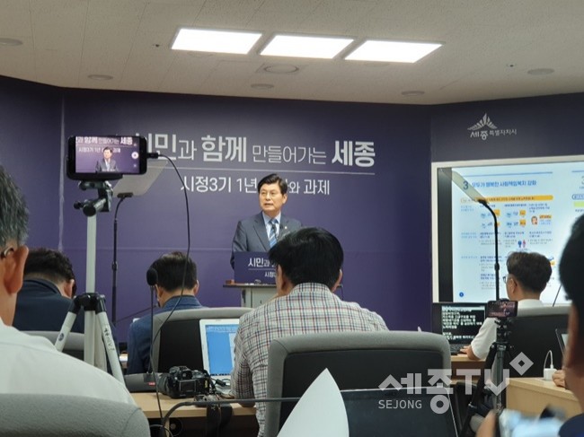 이 시장은 27일 세종시청에서 기자회견을 통해 "시정 3기가 출범한 이후 시민주권 특별자치시 행정수도 세종이 뿌리 내릴 수 있도록 기반을 마련했다"며 1년의 성과로 꼽았다.