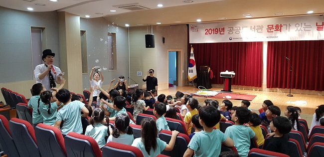 예산군립도서관은 문화체육관광부가 주최하고 한국도서관문화진흥원에서 주관하는 ‘2019 공공도서관 문화가 있는 날’ 공모사업의 일환으로 28일 청소년수련관 비전홀에서 유치원생을 대상으로 마술 공연을 선보였다.