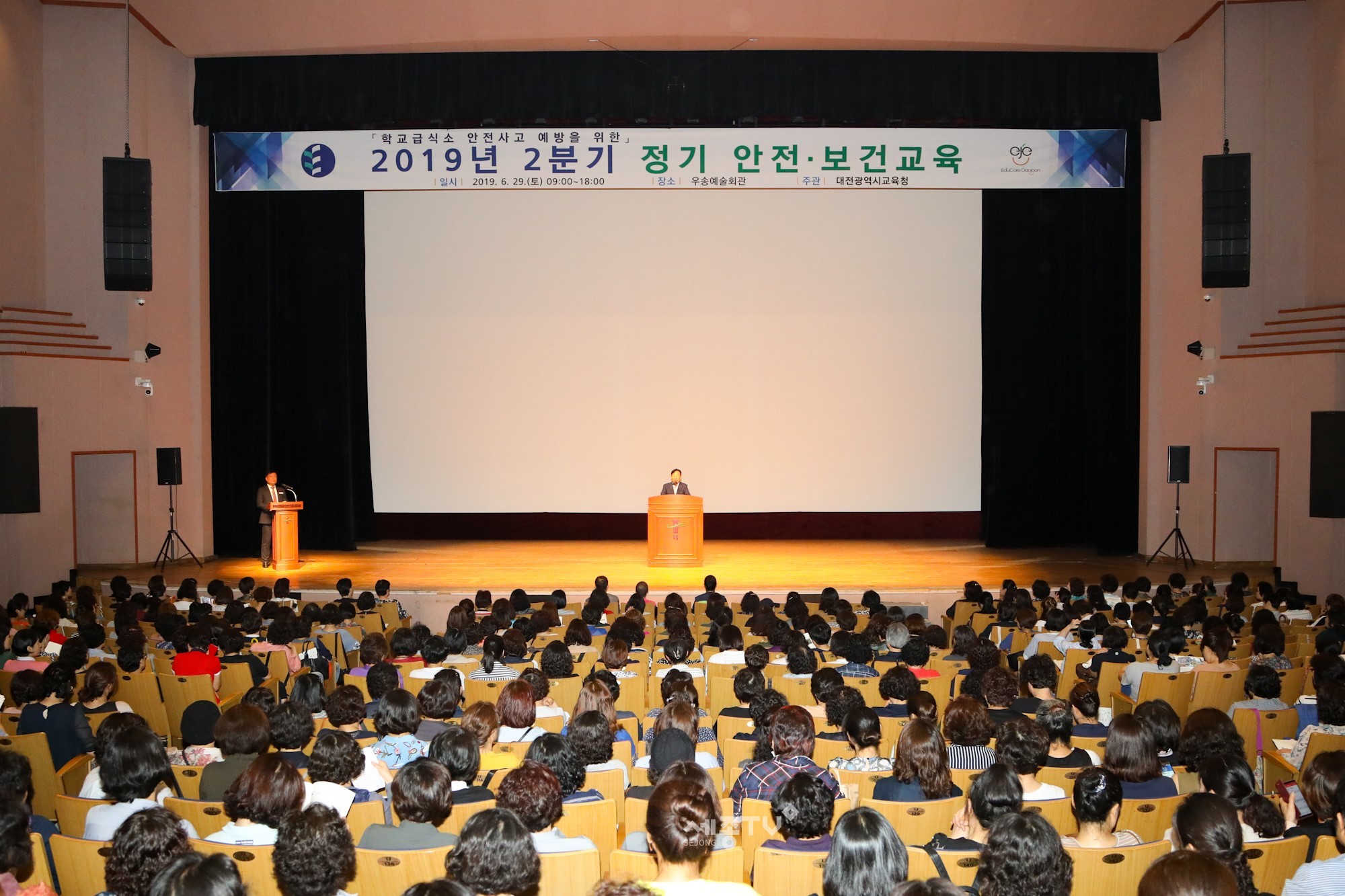 대전광역시교육청(교육감 설동호)은 6월 29일(토) 우송예술회관에서 학교(기관) 급식종사자 1,285명을 대상으로 2019년 2분기 정기 안전·보건교육을 실시했다고 밝혔다.