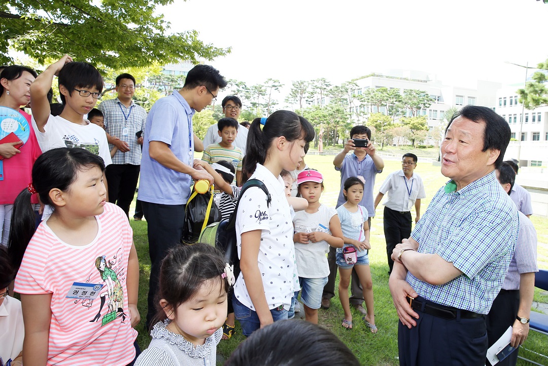 염홍철 대전시장은 이날 자녀들과 함께 기념촬영을 하는 자리에서 “여러분의 아빠엄마는 무더위에도 불구하고 대전시민을 위해 열심히 근무하고 있다”며 “여러분도 우리 사회에 꼭 필요한 훌륭한 사람이 될 수 있도록 열심히 공부하라.”고 당부했다.