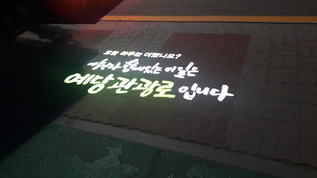 이번에 설치된 로고젝터는 벽면이나 바닥에 LED를 활용해 특정한 문구나 이미지를 송출하는 장치로, 관광객이나 주민들에게 도로명주소를 홍보하고 볼거리도 제공하는 효과가 있다.