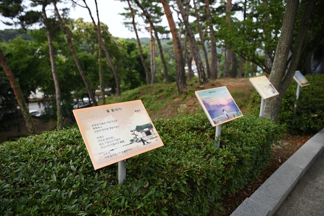 예산군은 예당호 야외공연장 입구에 설치된 시화대를 최근 새롭게 단장했다고 3일 밝혔다.