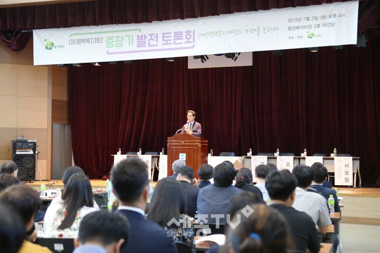(재)평택복지재단(이사장 김기성)은 평택복지재단 개관 10주년을 맞이하여, 평택복지재단 중·장기 발전계획 연구용역을 시행하고 중장기 발전계획 연구결과에서 제안한 사업계획을 실행하기 위해 7월 2일(화) 16시 팽성복지타운 2층 대강당에서 사회복지시설 종사자와 관련 전문가, 시민 등 130여명이 참여한 가운데 '평택복지재단 중·장기발전 계획 실행을 위한 토론회 - 평택복지재단의 미래를 논하다'를 개최했다.