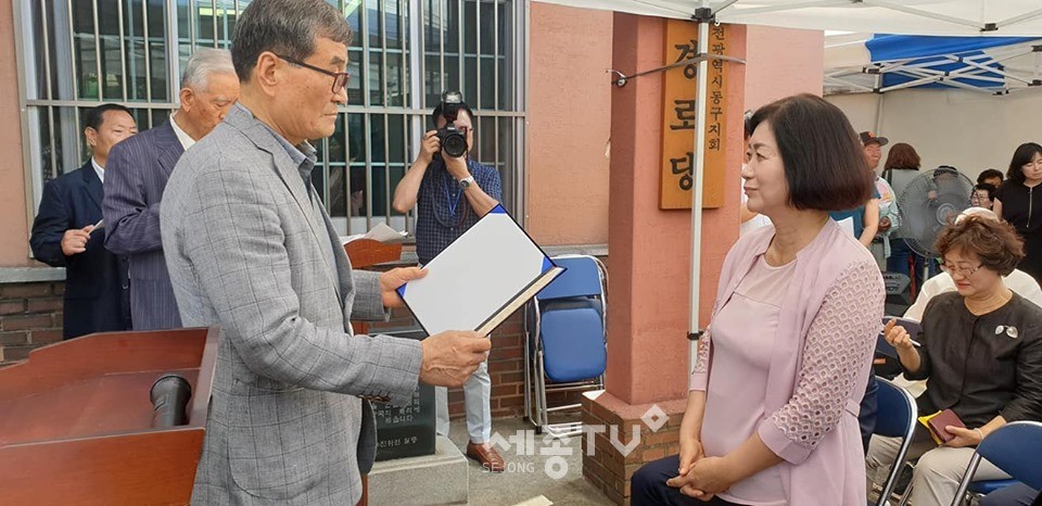 이 날 행사에서 동구의회 이나영 의장은 경로당 활성화를 위한 공로를 인정받아 이경원 회장으로부터 감사장을 수상했다. 이 의장은 “어르신들께서 경로당에서 편안하고 쾌적하게 지내실 수 있도록 앞으로도 적극적인 지원을 아끼지 않겠다”고 수상 소감을 밝혔다.