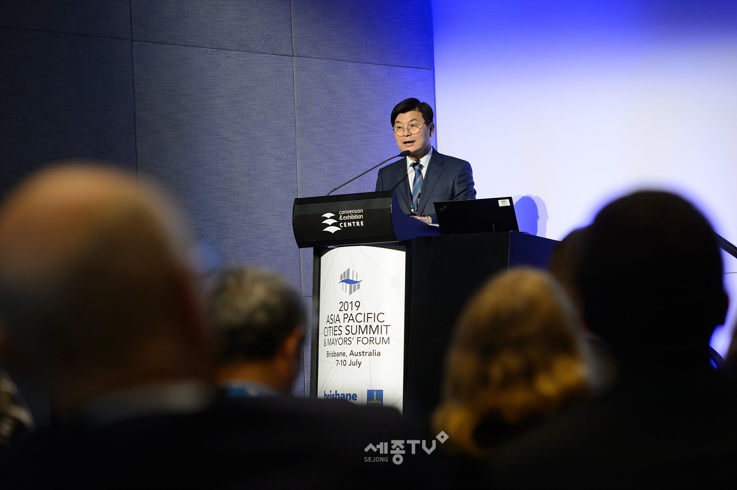 이춘희 세종특별자치시장이 8일 호주 브리즈번에서 열린 2019년 아시아태평양 도시정상회의(APCS)에 참석, 시민의 참여를 바탕으로 추진된 세종시의 도시혁신 사례를 발표했다.