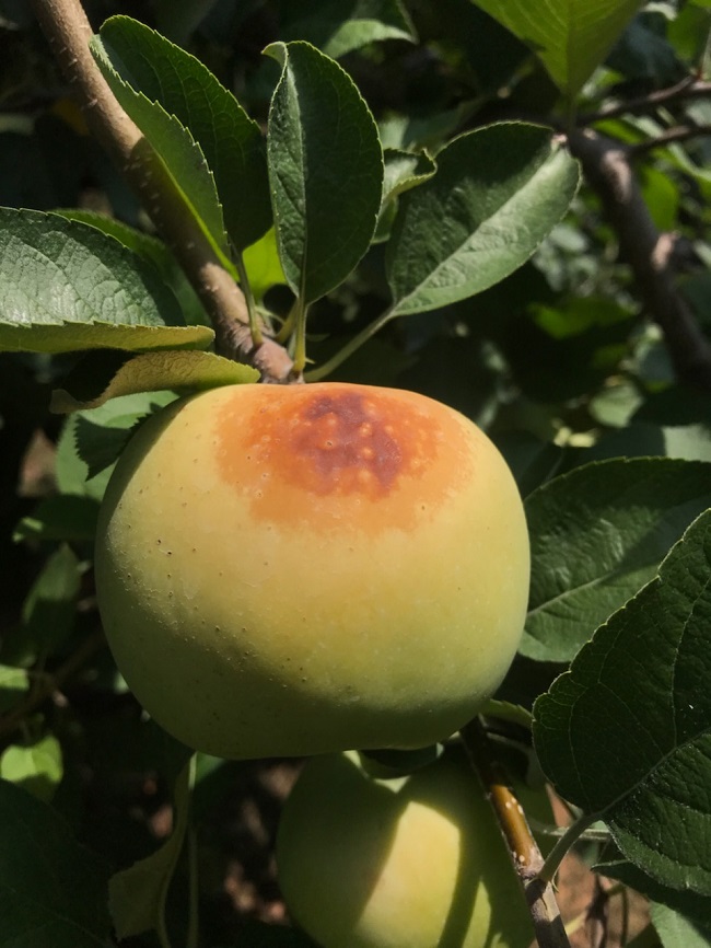 도 농업기술원 주정일 과수팀장은 “최근 키 낮은 사과원이 늘어나면서 강한 햇볕에 노출되는 과실이 많아지고 있다”며 “농업용 자외선 차단제 제조법 등 연구 중인 예방책을 농가에 보급해 쉽게 활용할 수 있도록 도울 것”이라고 말했다.