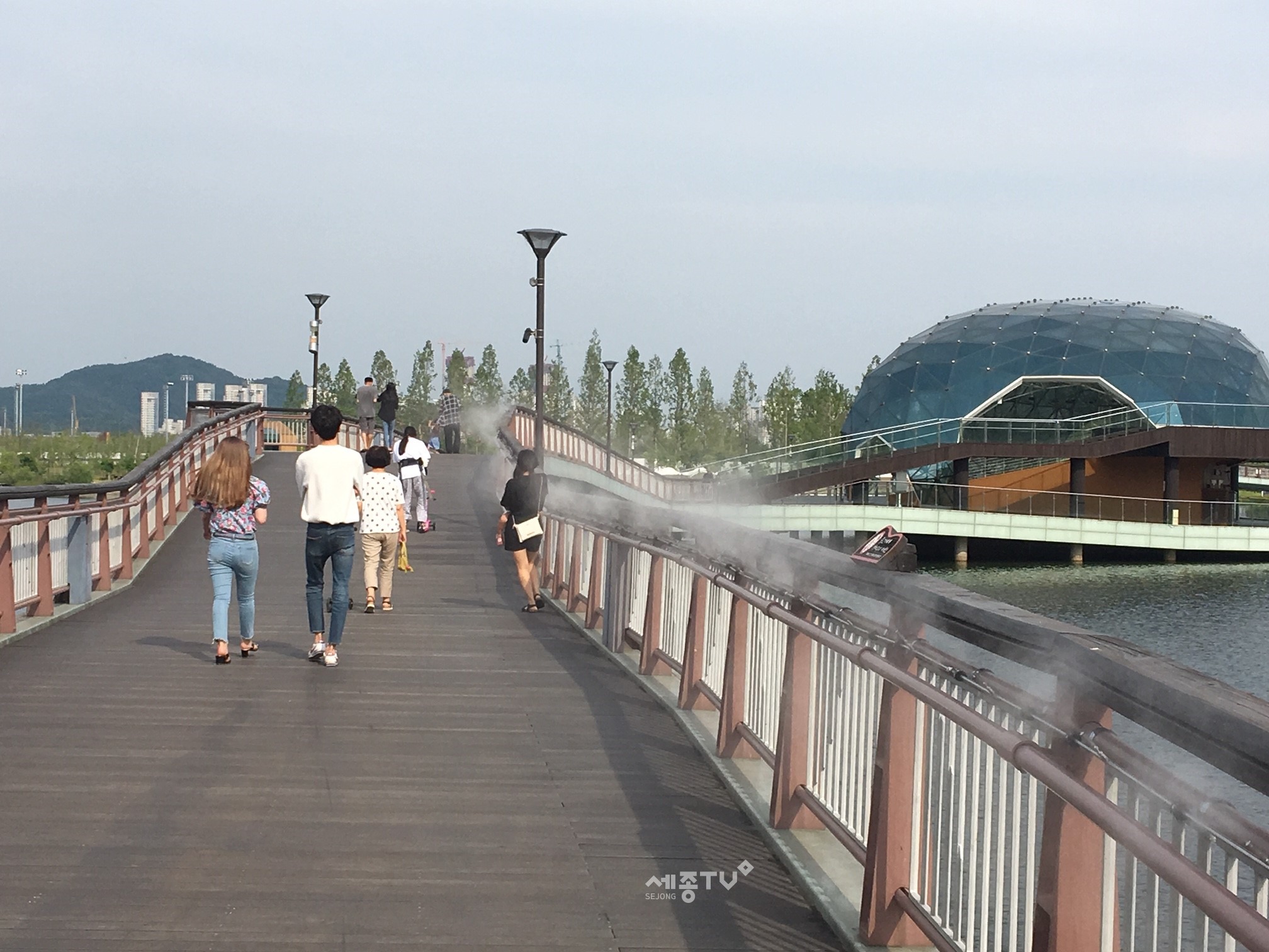 세종특별자치시(시장 이춘희)가 대표적인 폭염저감시설인 ‘쿨링포그’를 세종호수공원 세호교에 설치하고 매년 여름철 운영에 나선다.