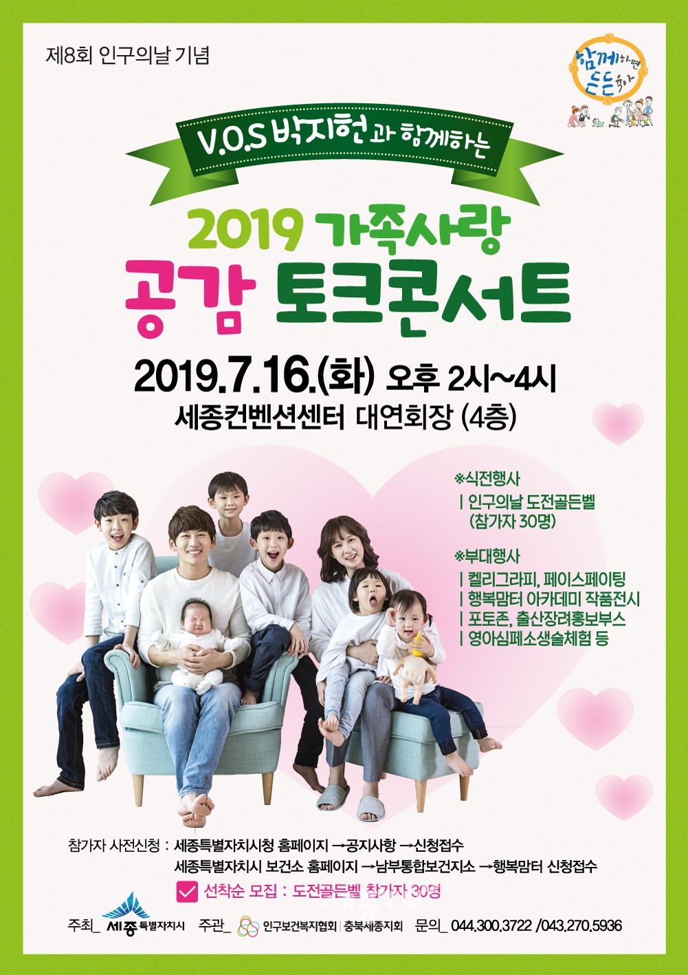 이어 2부 문화행사에서는 다둥이 아빠로 유명한 가수 박지헌을 초대해 ‘2019년 가족사랑 공감 토크콘서트’가 진행된다.