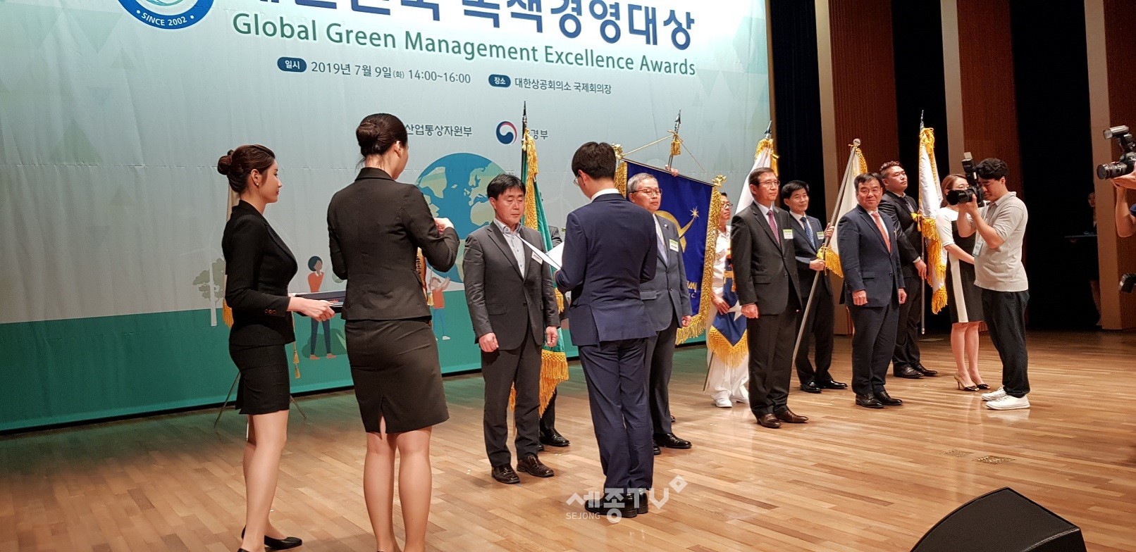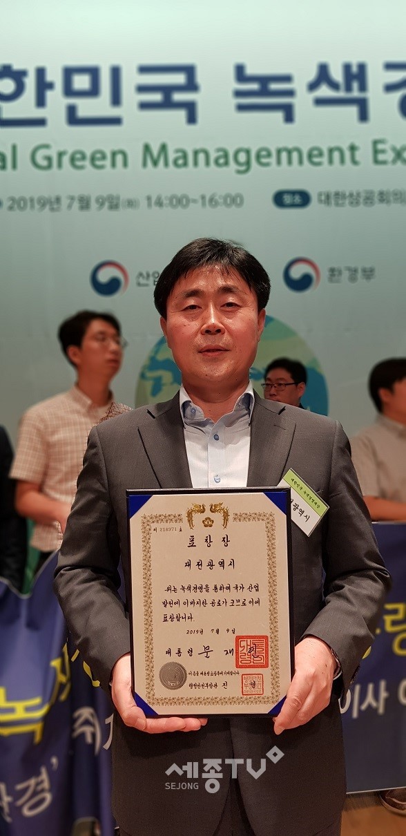 대전시는 9일 오후 대한상공회의소 국제회의장에서 열린 ‘2019 대한민국 녹색경영대상’ 정부포상 시상식에서 최고 영예의 대통령 표창을 수상했다.