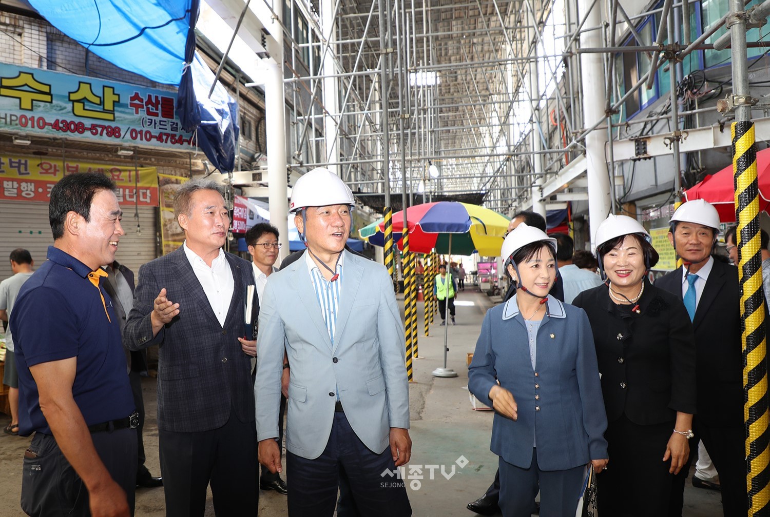 정장선 평택시장과 평택시의회 권영화 의장을 비롯한 시의회 의원은 지난 9일 통복시장 아케이드 설치공사 현장을 찾아 진행상황을 점검하고 상인들의 애로사항을 청취했다.