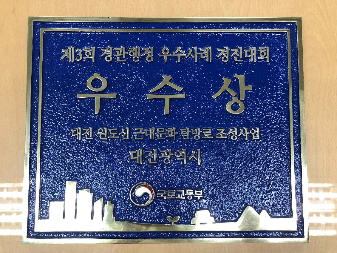 대전시는 국토부 주관으로 시행한 제3회 경관행정 우수사례 경진대회에서‘원도심 근대문화탐방로 조성사업’이‘우수상(3등)’을 수상했다고 15일 밝혔다.