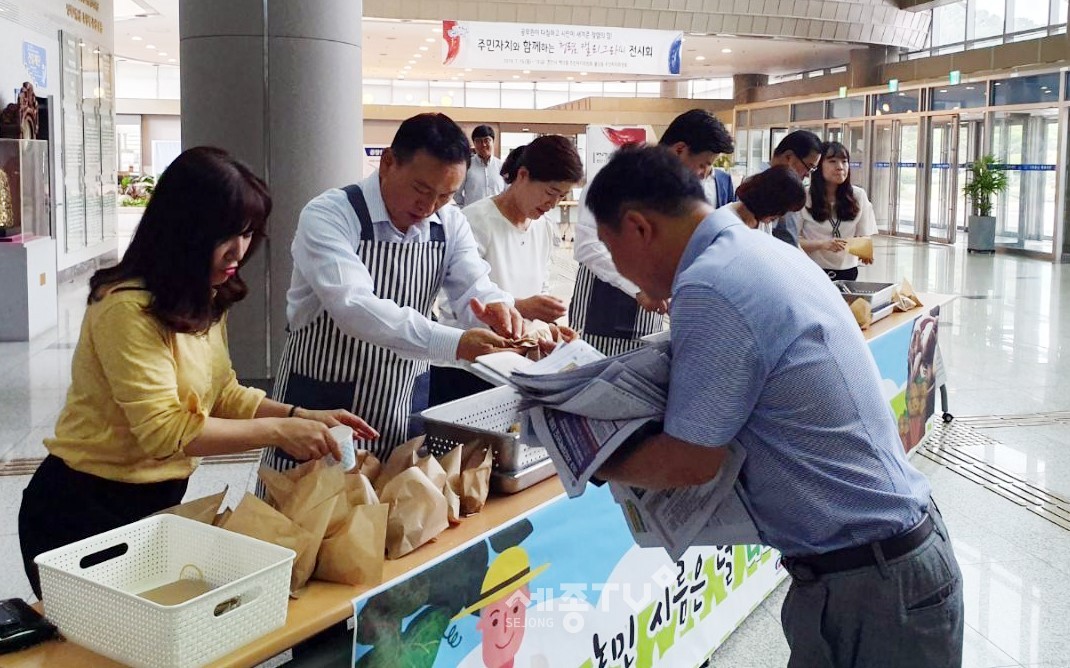 15일에는 출근 시간에 맞춰 아침식사 대용으로 찐 감자 700여개를 구본영 시장 등이 직접 시청 로비에서 직원들에게 제공하는 행사를 진행했다.