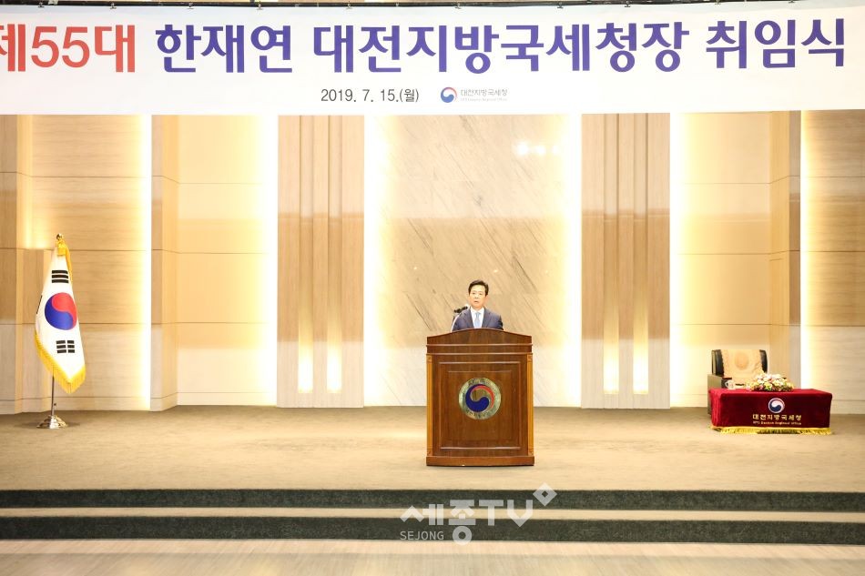 [세종TV=고광섭 기자] 한재연 제55대 대전지방국세청장이 취임했다. 15일 대전지방국세청은 2층 컨벤션홀 에서 한 청장의 취임식을 열었다.