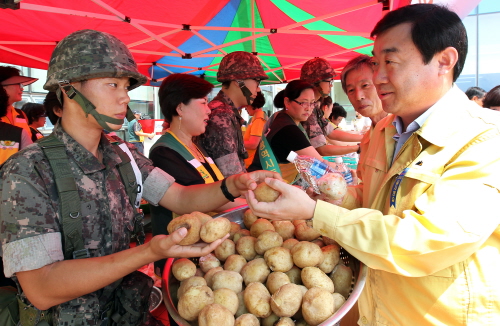 대전 동구(구청장 한현택)는 21일 구청 광장에서 주먹밥과 감자 등 전시음식을 마련해 공무원과 주민 등에게 나눠주는 전시 비상급식 체험행사를 통해 국가 안보의 중요성에 대한 국민적 공감대를 확산시켰다.
