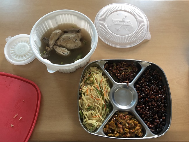 예산성당 밀알회가 제공한 삼계탕과 밑반찬