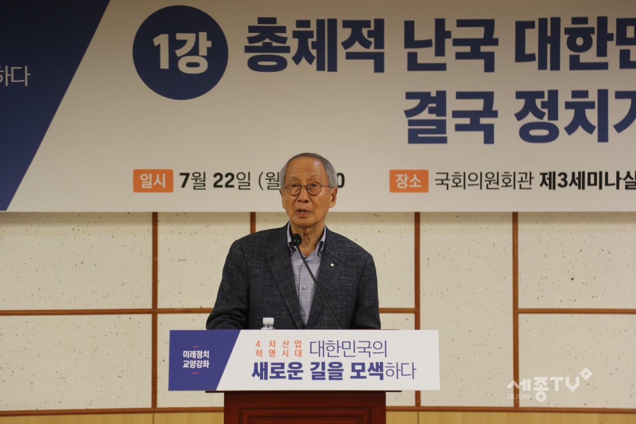 22일 윤여준 전 환경부장관이 미래정치 교양강좌 첫 강연자로 나서 ‘총체적 난국 대한민국, 결국 정치가 문제다!’ 라는 주제로 대한민국의 정치상황을 진단하고 문제점을 해결하기 위한 방안을 제시하며, 성황리에 개최되었다.