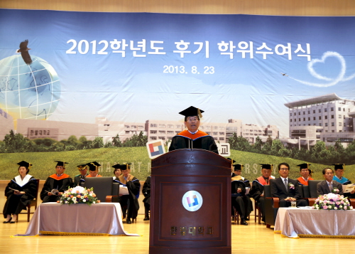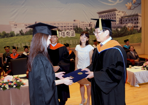 이날 학위수여식은 이원묵 총장의 졸업식사를 시작으로 성열구 총동문회장의 축사에 이어, 총장상과 학위증수여 순으로 진행됐다. 특히 이번 수여식에서는 학위수여 대상자 모두에게 개인별로 이원묵 총장이 직접 학위증서를 수여했다.