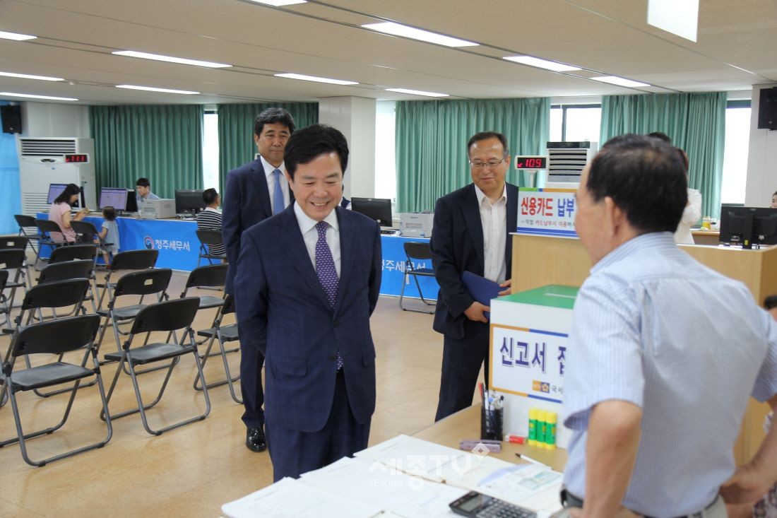 23일 충주세무서에 이어 24일 청주세무서를 방문한 한재연 청장은 청사 3층에 마련된 부가가치세 신고 창구에 들러,내방한 납세자들의 신고 애로사항을 살피고 신고서 작성을 도와주는 직원들을 격려하면서 “납세자가 세무서 방문없이 편리하게 신고할 수 있는 홈택스 전자신고 방법을 잘 설명해 드리고 방문한 납세자가 신고하는 데 불편함이 없도록 잘 도와줄 것”을 당부하였다.