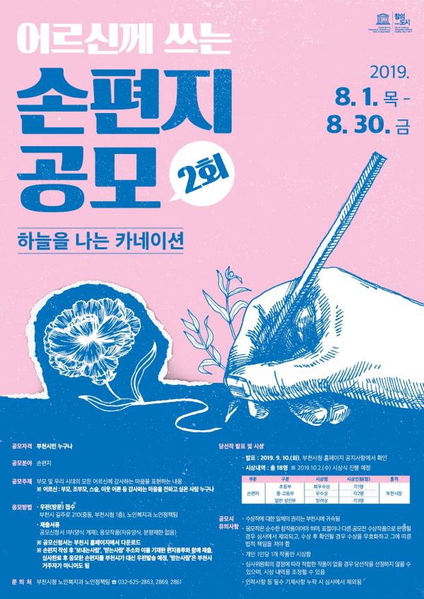 부천시는 이런 손편지의 감동을 공유하기 위해 8월 1일부터 8월 30일까지 제2회 어르신께 쓰는 손편지‘하늘을 나는 카네이션’을 공모한다.