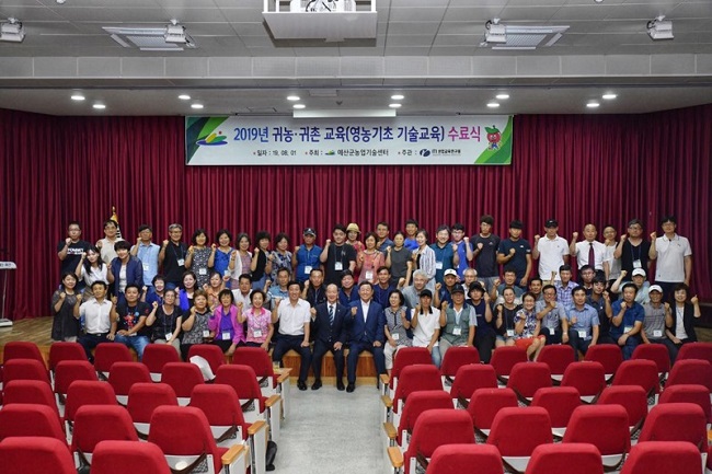 예산군농업기술센터는 1일 농업기술센터 교육관에서 2019년도 귀농·귀촌 교육 과정 수료식을 성황리에 마쳤다고 밝혔다.