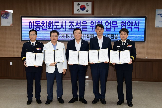 홍성군은 지난 2일 홍성군의회, 홍성교육지원청, 홍성경찰서, 홍성소방서와 아동친화도시 조성을 위한 지역사회 유관기관 업무 협약을 맺었다.