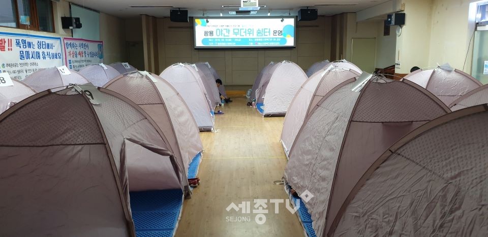 ‘야간 무더위 쉼터’는 에어컨 등 냉방대책 마련이 시급한 주공7단지 1차아파트 무더위 취약계층을 대상으로 복지관 1층 강당을 무료 개방하여 운영되며, 오후 6시부터 다음날 오전 8시까지 이용할 수 있다. 쉼터엔 개인용 텐트 및 매트 30개를 설치하여 쾌적한 잠자리를 제공할 수 있도록 할 계획이다. 자세한 내용은 쌍용종합사회복지관 홈페이지(www.ssbok.or.kr) 및 대표 전화(041-571-4064)를 통해 문의할 수 있다.