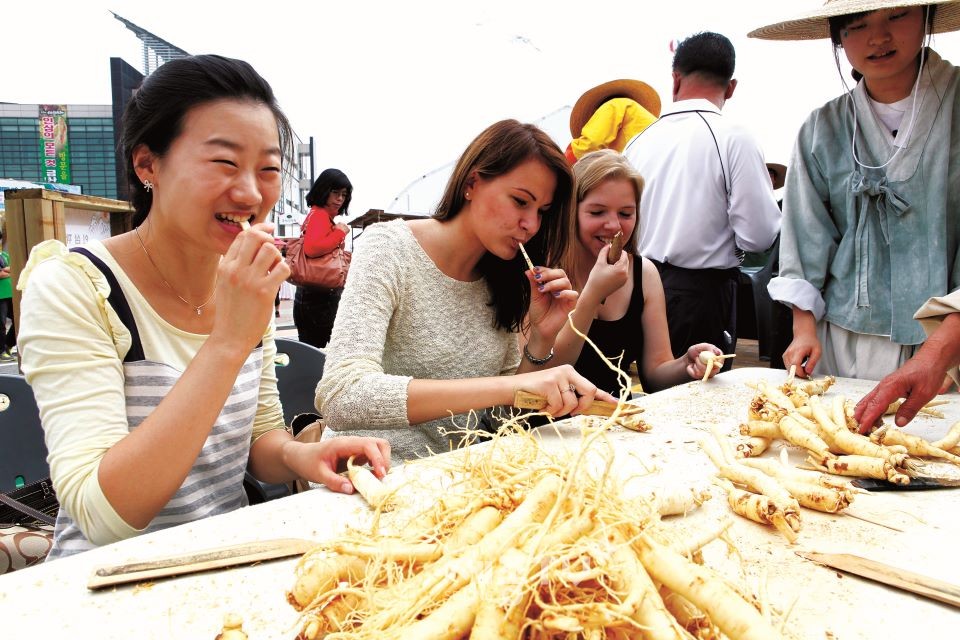 여기에 인삼튀김, 인삼초코퐁듀, 인삼풀빵, 인삼해독주스, 인삼수수부꾸미 등의 인삼약초요리를 만들어 먹어볼 수 있는 체험도 마련돼 먹는 재미를 더한다.