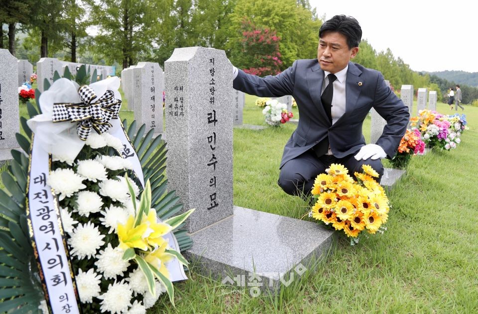 김종천 대전광역시의회의장은“최근 일본의 경제보복에 맞서 이를 극복하기 위한 자발적 시민운동이 고조되고 있는 현 시국에 나라의 독립과 국가의 자유를 위해 희생하신 순국선열 및 호국영령의 묘역 참배는 참으로 의미가 깊다”며“일본의 경제 보복을 기술 독립과 경제 개선의 기회로 만들어 나가자”고 강조했다.