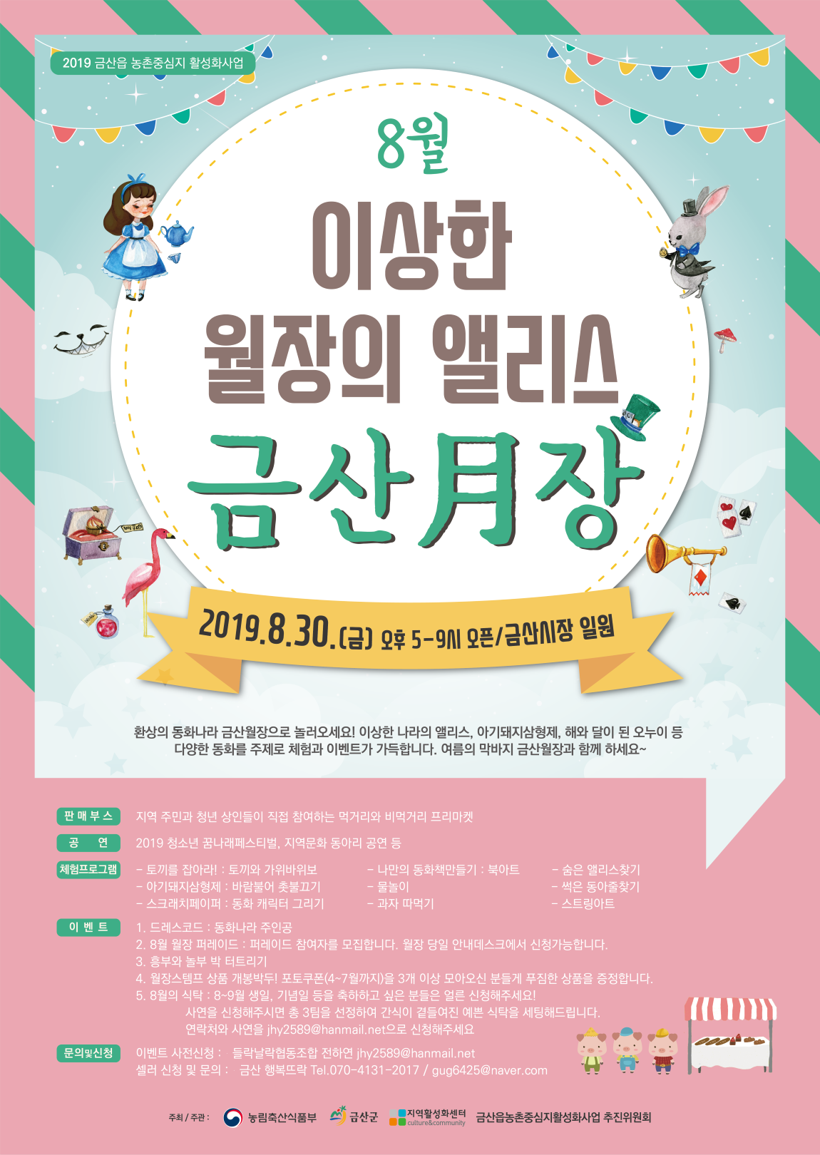【세종TV-김광무 기자】금산시장은 8월 월장 ‘이상한 월장의 앨리스’를 개최한다.